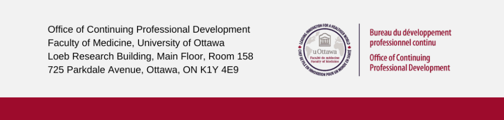 As a sponsor of this educational event, we are responsible to review and comply with the ethics and policies identified by the University of Ottawa, Office of Continuing Professional Development and National Standards. For more information please the CPD Policies Website (https://www.uottawa.ca/faculty-medicine/professional-development).